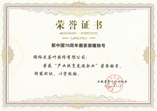 新中國(guó)70周年徽茶榮耀稱(chēng)號(hào)