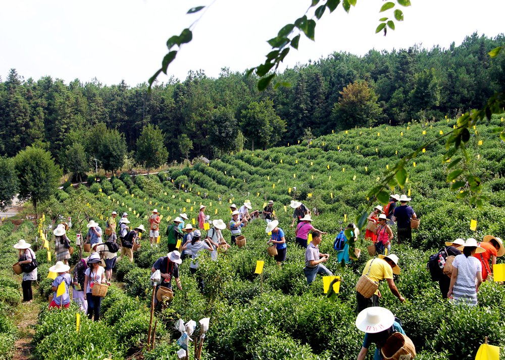 當天,專家一行先后聽取了關(guān)于謝裕大茶博園項目的規(guī)劃及進展情況,并就生態(tài)環(huán)保、創(chuàng)新發(fā)展等方面交流了意見和建議。隨后專家們在茶園采摘區(qū)進行了茶葉采摘與黃山毛峰炒茶制作的體驗,同時觀賞了茶藝表演與品茗講解等。專家們迫不及待地親自參與到采茶與制茶中來,并對黃山毛峰茶的制作技藝豎起大拇指,嘖嘖稱奇;而優(yōu)雅精彩的茶藝表演更是吸引了專家們的青睞,紛紛合影留念。最后,專家們邊品茗邊感嘆于謝裕大茶葉的百年歷史傳承與品質(zhì)堅守精神,沉浸在茶香中感受徽茶文化的魅力,對徽茶文化產(chǎn)生了濃厚的興趣。