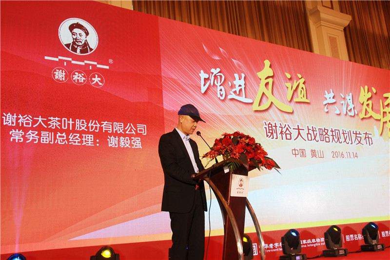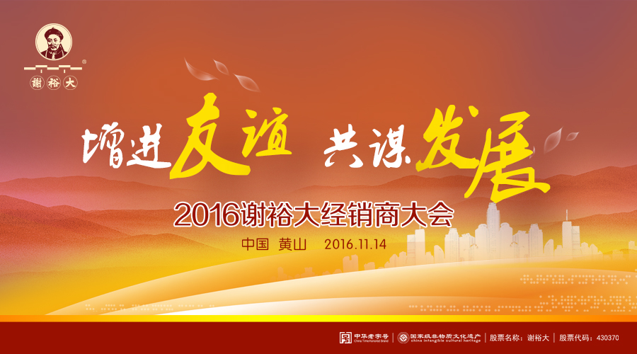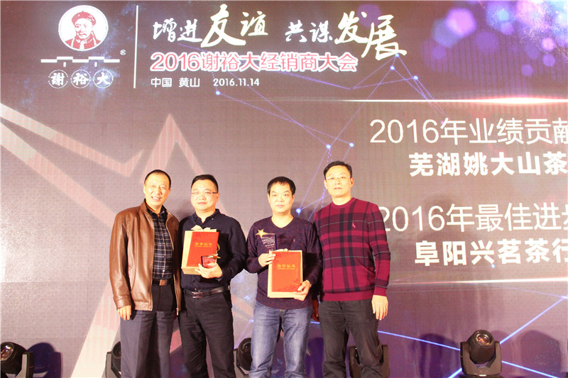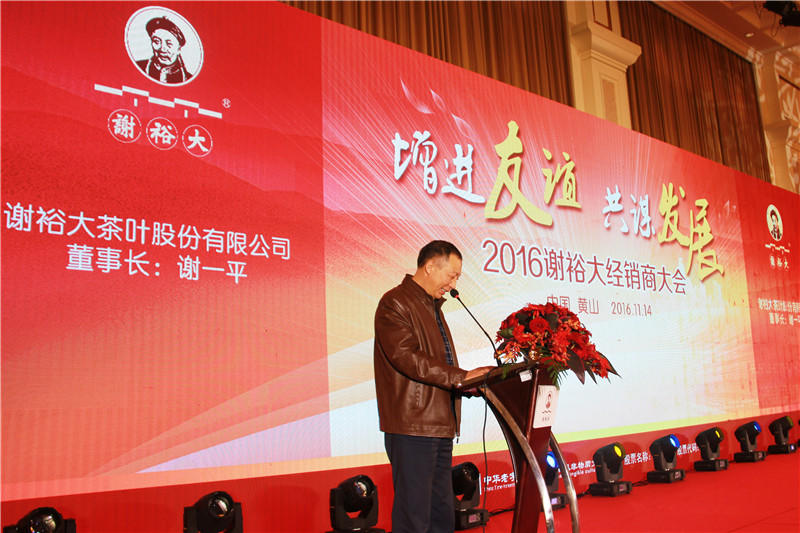 2016年11月13日-15日,謝裕大茶葉股份有限公司2016年度經(jīng)銷商會議在黃山新華聯(lián)豪生大酒店隆重召開,近120家優(yōu)秀經(jīng)銷商代表應(yīng)邀齊聚黃山。本屆大會以“增進(jìn)友誼 共謀發(fā)展”為主題,力求開啟合作共贏新篇章,會議發(fā)布了企業(yè)戰(zhàn)略規(guī)劃和2017年新產(chǎn)品包裝;同時獎勵優(yōu)秀經(jīng)銷商,鼓勵經(jīng)銷商與謝裕大共同發(fā)展,并分析和探討了“徽茶未來的發(fā)展方向、機遇和挑戰(zhàn)”等話題。