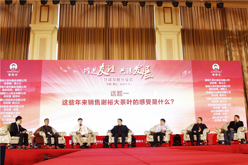 在接下來的“共謀發(fā)展分享會”上,謝裕大總經(jīng)理楊義云、副總經(jīng)理謝明之邀請了六位與謝裕大合作已久的杰出經(jīng)銷商代表上臺就“多年來銷售謝裕大茶葉的感受”和“徽茶的未來發(fā)展方向”等話題進(jìn)行共同探討,與各位新老經(jīng)銷商朋友們分享了自己的看法并給出了建議。各位老經(jīng)銷商朋友們分別侃侃而談,將自己多年的銷售心得慷慨分享,贏得經(jīng)銷商代表們的一致好評。