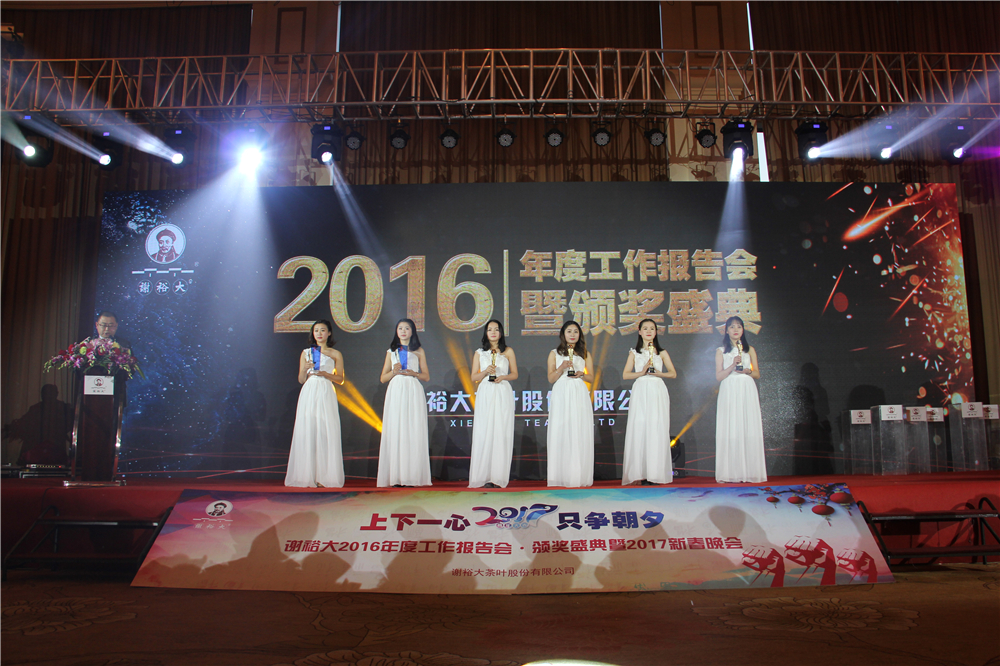 2017年1月21日,謝裕大茶葉股份有限公司2016年度總結(jié)表彰暨2017年新春晚會于新華聯(lián)豪生大酒店盛大舉行。謝裕大公司總部全體員工、合肥、上海、淮南、六安、醉王、祁門等分子公司優(yōu)秀員工代表等近500人出席并參加了此次盛會。
