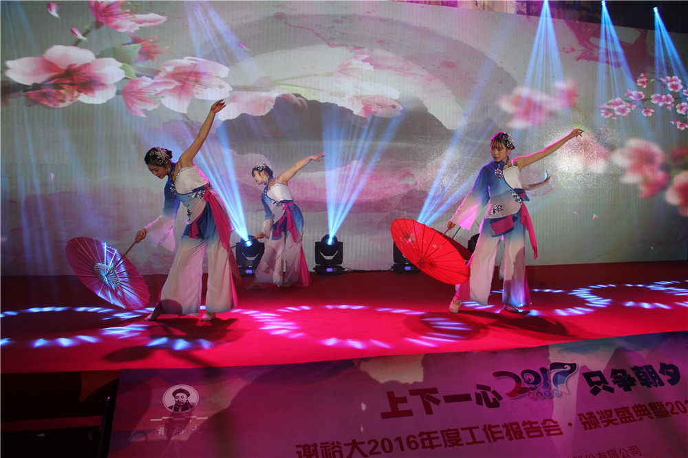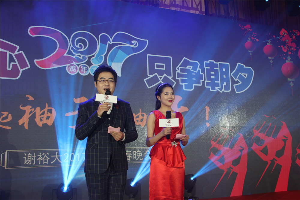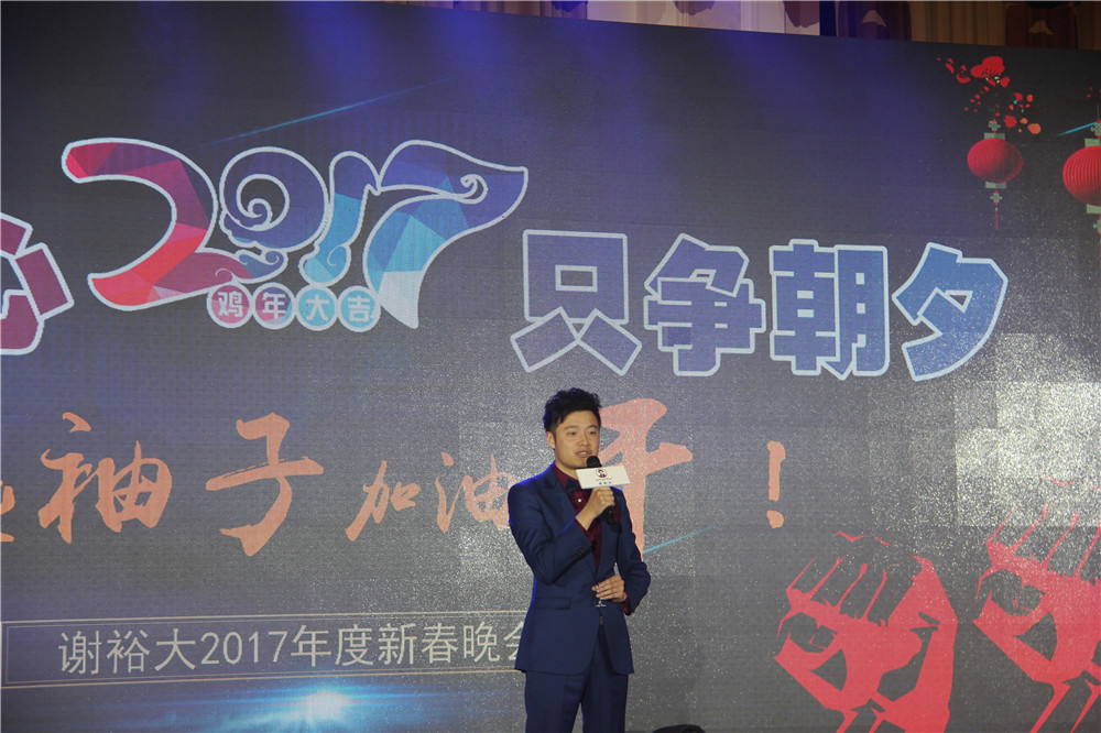 18點45分,謝裕大新春晚會正式開始。所有的謝裕大人歡聚一堂,共饗盛宴;晚宴正式開始前,副總經(jīng)理謝明之為大家致祝酒詞,謝總為全體員工送上了美好的新年祝福,他表達了對謝裕大同仁在 2016 年努力工作的謝意,并強調(diào) 2016年公司的成績是所有謝裕大人團結(jié)一致、共同努力的結(jié)果。希望大家在 2017年繼續(xù)逐夢,奮斗不止!