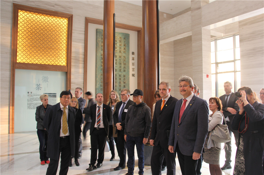 德國施特拉爾市市長亞歷山大·巴德洛夫表示德國總理默克爾到訪中國時(shí)收到的禮物就是謝裕大茶,今天很榮幸能夠來到謝裕大參觀,希望可以進(jìn)一步加深與謝裕大的合作。謝裕大希望以此次活動(dòng)為契機(jī),大力弘揚(yáng)中國傳統(tǒng)徽茶文化,進(jìn)一步加大與德方交流力度,進(jìn)一步增進(jìn)兩地人民的友誼;期待在不遠(yuǎn)的將來,摸索出多方位的合作途徑,兩地能夠?qū)崿F(xiàn)互利合作、共同發(fā)展。