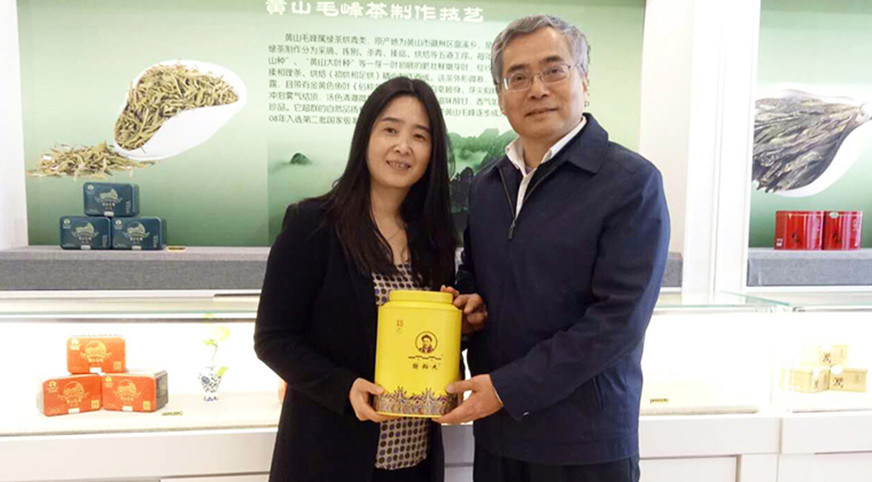 謝裕大北京辦事處負責任人張紅梅(左一)與黃山市副市長陸群(右一)合影