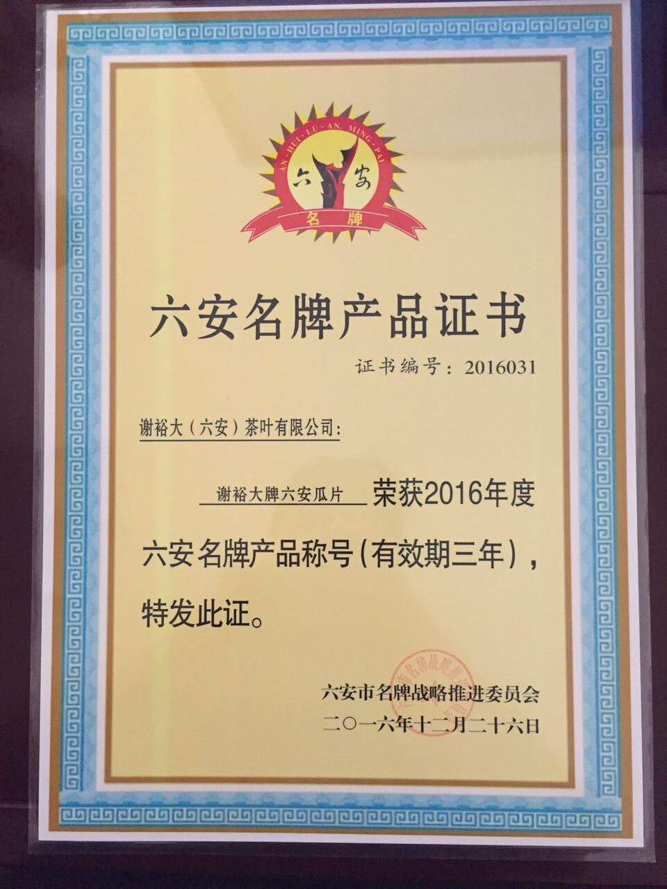 近日,六安市名牌戰(zhàn)略推進(jìn)委員會(huì)公布2016年六安名牌,謝裕大牌六安瓜片喜獲2016年度六安名牌產(chǎn)品稱號。此次獲此殊榮不僅是對謝裕大品牌的肯定,更是對謝裕大名牌戰(zhàn)略工作的嘉獎(jiǎng)。謝裕大將繼續(xù)努力,不斷提高質(zhì)量品牌升級戰(zhàn)略,大力實(shí)施質(zhì)量強(qiáng)企和名牌發(fā)展戰(zhàn)略,繼續(xù)積極走好品牌建設(shè)之路。