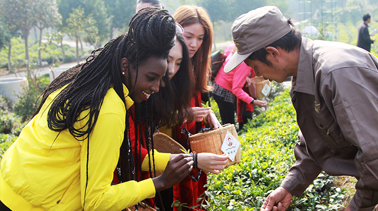 中國是茶文化的發(fā)源國,在中國文化語境里,悠久的茶文化賦予人們真善美;而美不僅僅是形態(tài),更是神態(tài),語言,文化韻味等多方面的綜合體。集采茶、做茶、品茶、茶藝表演等為一體的茶文化可以說是中國千年傳統(tǒng)美學(xué)文化的重要組成部分。28日當天,世界小姐們迎著朝陽來到了謝裕大生態(tài)茶園進行觀光體驗,晨曦云霧中漫山的茶樹,和煦陽光下熠熠生輝的新鮮嫩葉吸引了“世姐”們不斷駐足觀賞并親自上陣采摘,整個茶園一眼望去正是“綠意盎然遍蔥蘢,姣姣麗質(zhì)蘊其中”。