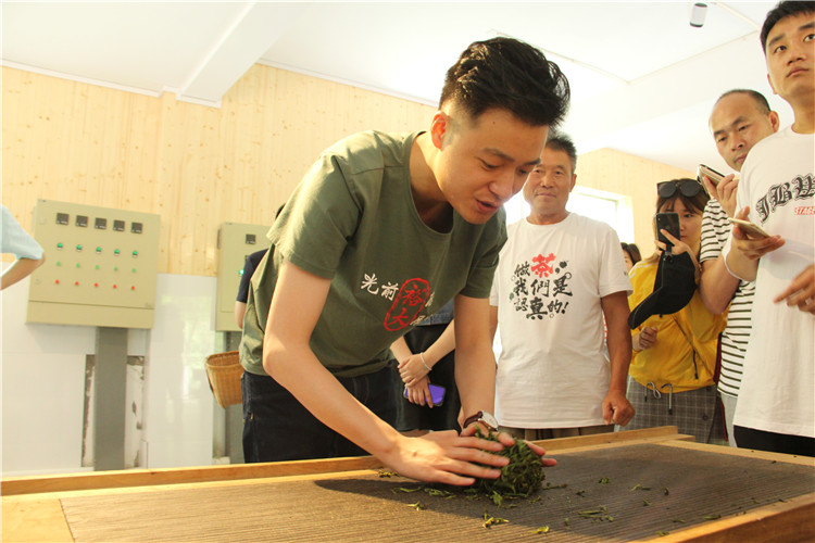 隨后,嘉賓們步行至生態(tài)茶園中的制茶坊參觀、體驗制茶工藝,眼前成片欣欣向榮的茶園散發(fā)著淡淡的茶香,惹得嘉賓們興致倍增,紛紛走進茶園之中拍照、記錄。采青、攤青、殺青、揉捻、烘焙……嘉賓們親臨現(xiàn)場,親自動手體驗,看一泡黃山毛峰好茶如何羽化成仙,真正多方位、多層次的感受到徽茶文化的博大精深。