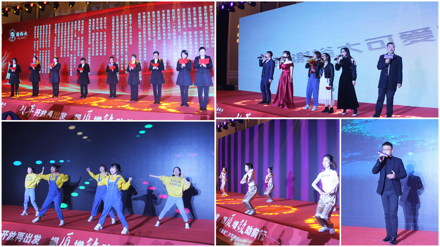 年會(huì),就是辭舊迎新的家宴。精彩紛呈的謝裕大“迎新春·展新貌”文藝晚會(huì)正式開啟,熱情如火的舞蹈與歌曲串燒,點(diǎn)燃整場(chǎng)晚會(huì)的喜悅氣氛,贏得滿堂歡聲笑語;更有另辟蹊徑的詩歌朗誦和別開生面的鋼琴彈唱,帶給大家視覺上的新鮮感,成為晚會(huì)搶眼的一道風(fēng)景線。無論哪一種表演形式,這些精心準(zhǔn)備的節(jié)目都展露出謝裕大人多姿多彩的生活,呈現(xiàn)出這個(gè)大家庭的別樣風(fēng)韻。