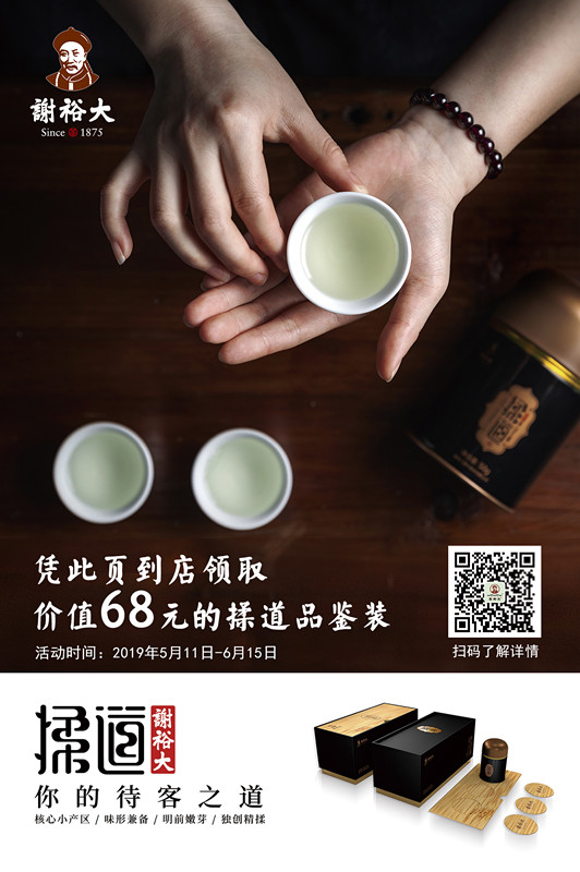 現(xiàn)場的毅行者們來到〖謝裕大茶水補給站〗,親自品味春之鮮,循著茶香,一杯鮮甜的黃山毛峰自在隨飲,洗刷來路的疲累,助力前方更美的旅途。在這里,有穿著懸掛品茗杯裙的茶仙子,還有炒茶、品茶、悟茶道等各種零距離體驗,給毅行者們360°的美妙茶旅程,為毅行之路補水增香。除了現(xiàn)場福利之外,5.11——6.15活動期間,凡是參加2019環(huán)巢湖毅行大會的毅行者們來到「謝裕大」不僅有好茶喝,更有好茶相贈。廣大毅友憑《毅行手冊》前往謝裕大合肥各門店,即可領取“揉道·黃山毛峰”超值品鑒裝一份。