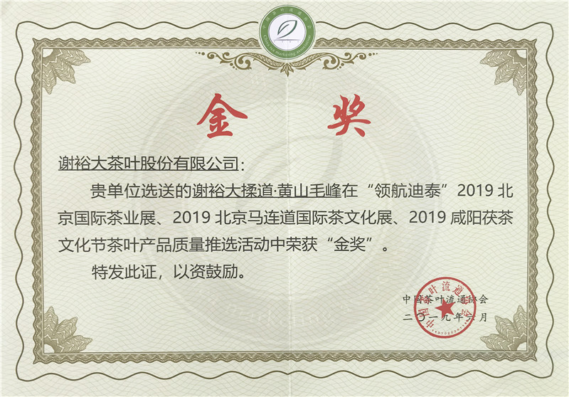 開幕式當(dāng)天北展現(xiàn)場次傳來好消息,謝裕大·揉道黃山毛峰榮獲雙料大獎(jiǎng)!謝裕大揉道·黃山毛峰榮獲“2019中國茶葉集群品牌聯(lián)盟(春季)推薦茶葉超級(jí)單品”;同時(shí)在“領(lǐng)航迪泰”文化節(jié)茶葉產(chǎn)品質(zhì)量推選活動(dòng)中榮獲“金獎(jiǎng)”。謝裕大已連續(xù)五屆在北展茶葉產(chǎn)品評(píng)選推介活動(dòng)榮獲獎(jiǎng)項(xiàng),這不僅是對(duì)謝裕大產(chǎn)品質(zhì)量的嘉獎(jiǎng)和肯定,更是對(duì)謝裕大品牌價(jià)值和綜合實(shí)力的鼓勵(lì)與認(rèn)可!謝裕大將繼續(xù)堅(jiān)定不移的走好茶產(chǎn)業(yè)轉(zhuǎn)型升級(jí)之路,嚴(yán)把質(zhì)量關(guān),用創(chuàng)新鍛造綜合實(shí)力,為茶行業(yè)樹立好品牌榜樣!