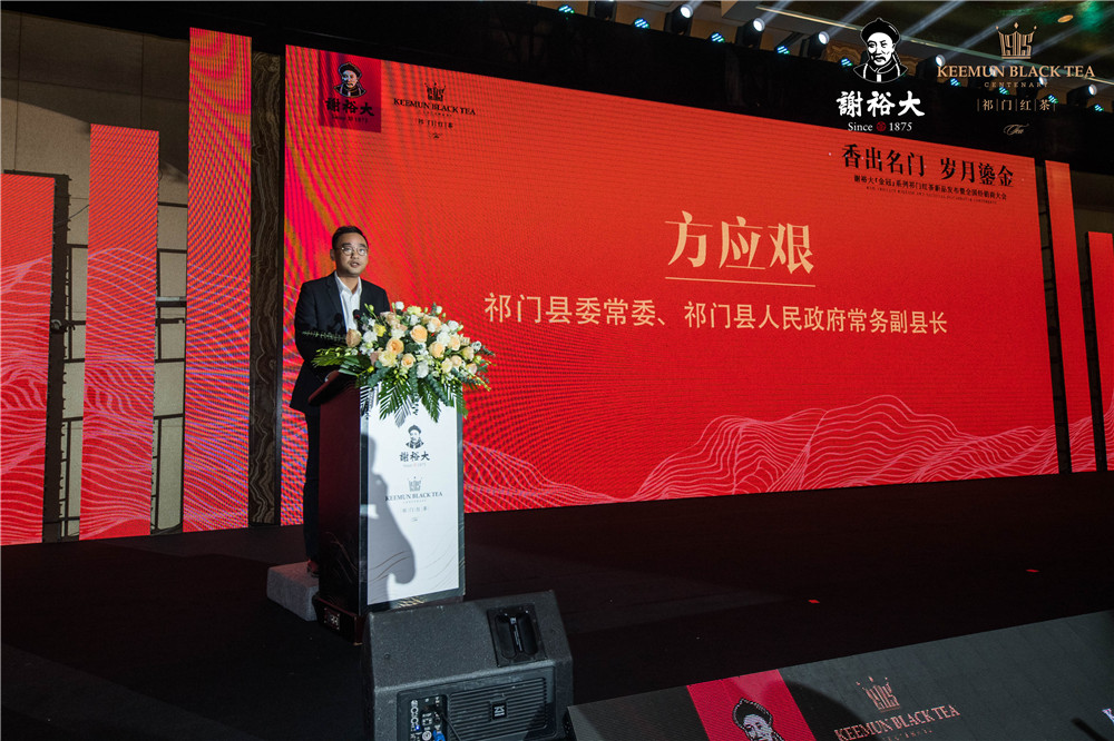 謝裕大總經理謝明之為祁紅金冠系列新品首發(fā)儀式揭幕
