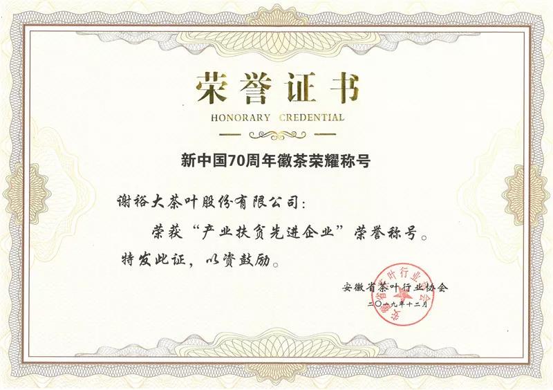 2019年12月3-4號,安徽省茶葉行業(yè)協(xié)會四屆三次理事會暨精準(zhǔn)扶貧產(chǎn)業(yè)興旺岳西論壇新中國70周年徽茶榮耀頒獎盛典在岳西縣天際國際大酒店召開,本次大會由安徽省茶葉行業(yè)協(xié)會、岳西縣人民政府主辦,省內(nèi)外200多位領(lǐng)導(dǎo)、專家及會員單位參與。大會先后評選出“終身成就獎”、“功勛人物獎”、“杰出貢獻(xiàn)獎”、“產(chǎn)業(yè)扶貧先進(jìn)企業(yè)”等獎項(xiàng),謝裕大在此次活動中榮獲“產(chǎn)業(yè)扶貧先進(jìn)企業(yè)”、董事長謝一平獲得“功勛人物獎”共兩個重量級獎項(xiàng)。