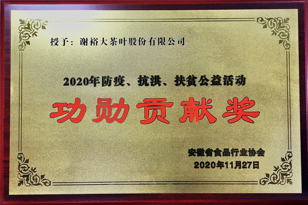 2020年11月27日,安徽省食品行業(yè)“防疫、抗洪、扶貧”公益表彰大會(huì)在濱湖會(huì)展中心舉辦。本次活動(dòng)由安徽省食品行業(yè)協(xié)會(huì)主辦,140多家被表彰企業(yè)參加了大會(huì),謝裕大位列其中,榮獲2020年防疫、抗洪、扶貧公益活動(dòng)“功勛貢獻(xiàn)獎(jiǎng)”!2020年,全省食品行業(yè)積極響應(yīng)省委省政府的號(hào)召,在省民政廳及各級(jí)政府的指導(dǎo)下,積極參與疫情防控、抗洪搶險(xiǎn)、扶貧攻堅(jiān)、援助新疆等工作,并取得了很大的成績(jī),向社會(huì)彰顯了我省食品行業(yè)的社會(huì)責(zé)任。