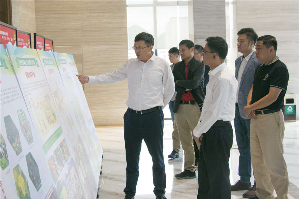 省農(nóng)業(yè)農(nóng)村廳黨組成員、副廳長(zhǎng)王紅(右三)一行聽(tīng)取市農(nóng)業(yè)農(nóng)村局黨組書(shū)記、局長(zhǎng)程寄縣(左一)