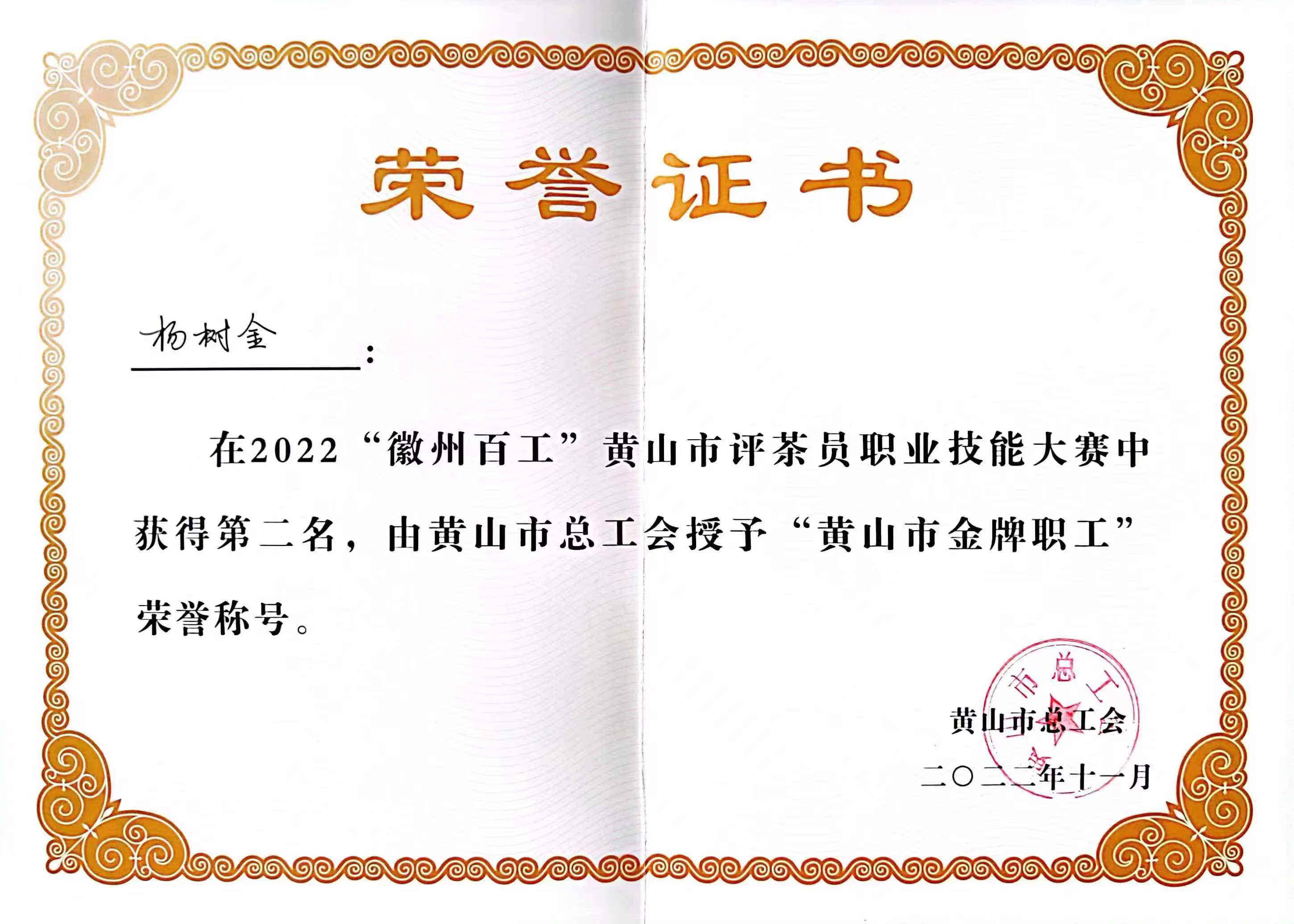 三區(qū)四縣18位選手參賽,通過理論考試和實際操作測試,上演了一場精彩的對決,謝裕大選手楊樹金喜獲總成績第二名,被授予“黃山市金牌職工”稱號。