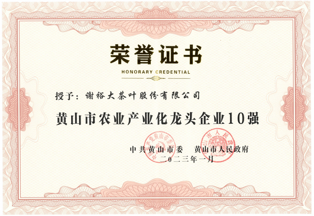 謝裕大對此次大會頒發(fā)的榮譽十分珍惜,未來也將持續(xù)秉持服務(wù)“三農(nóng)”的初心,繼續(xù)堅持高質(zhì)量發(fā)展理念,依托黃山豐厚的生態(tài)、文化及旅游資源,發(fā)揮龍頭示范作用,加快推進戰(zhàn)略興農(nóng)、產(chǎn)業(yè)助農(nóng)、品牌強農(nóng),通過催生新業(yè)態(tài)、發(fā)展新模式、拓展新領(lǐng)域,持續(xù)推動“文化+旅游”發(fā)展新格局。以創(chuàng)新為動力,以質(zhì)量求生存,以發(fā)展求壯大,不斷提升產(chǎn)品品質(zhì)與服務(wù)水平,奮力推動全市經(jīng)濟社會高質(zhì)量發(fā)展。