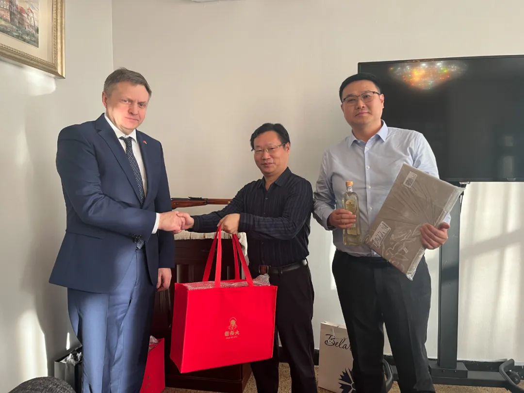 謝裕大茶禮贈白俄羅斯新任駐華大使切爾維亞科夫(左一)