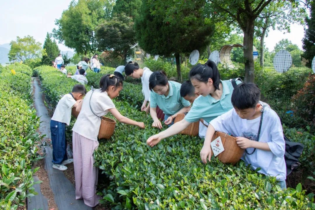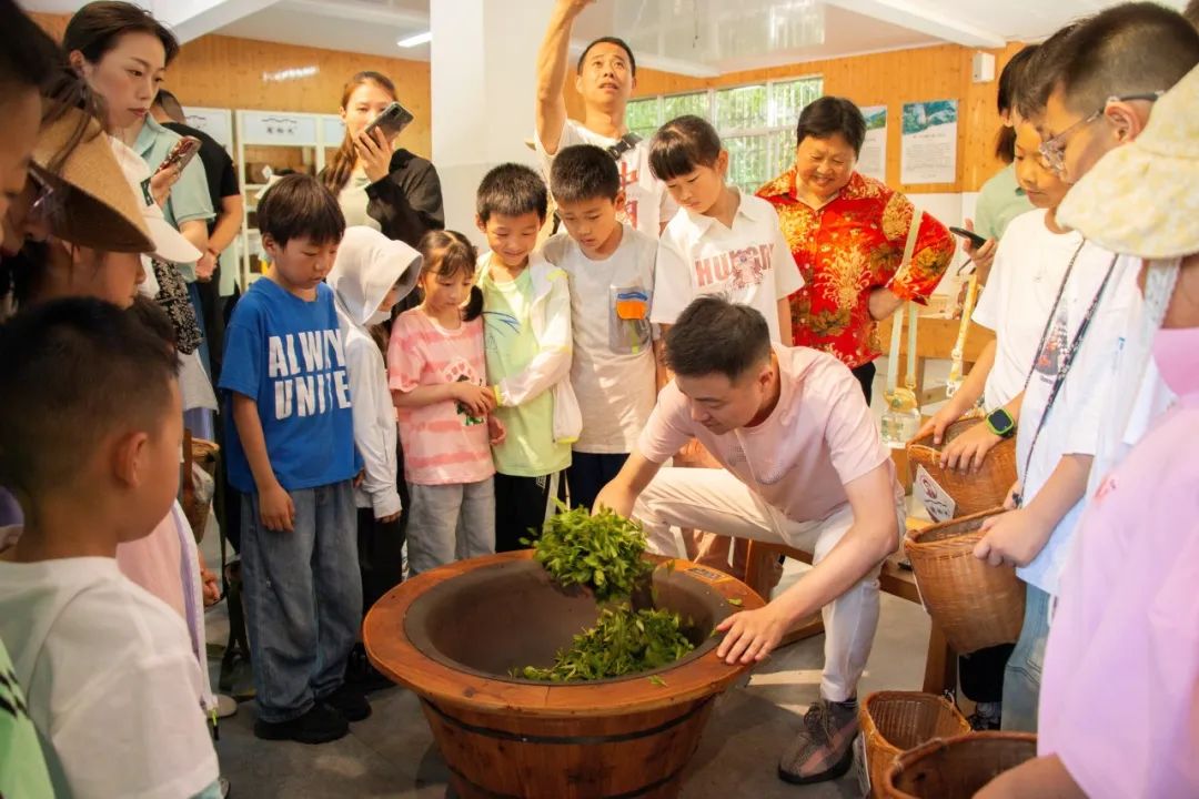 隨后在萬物青翠的生態(tài)茶園中,與茶為伴獲得純真的快樂。親手采摘的茶葉,經(jīng)過爸爸媽媽的指導后親手炒制、揉捻、烘干,體驗到謝裕大傳承百年非遺制茶技藝的獨特魅力。