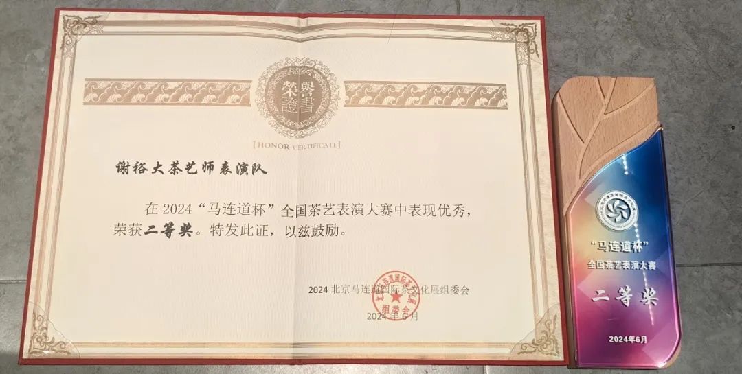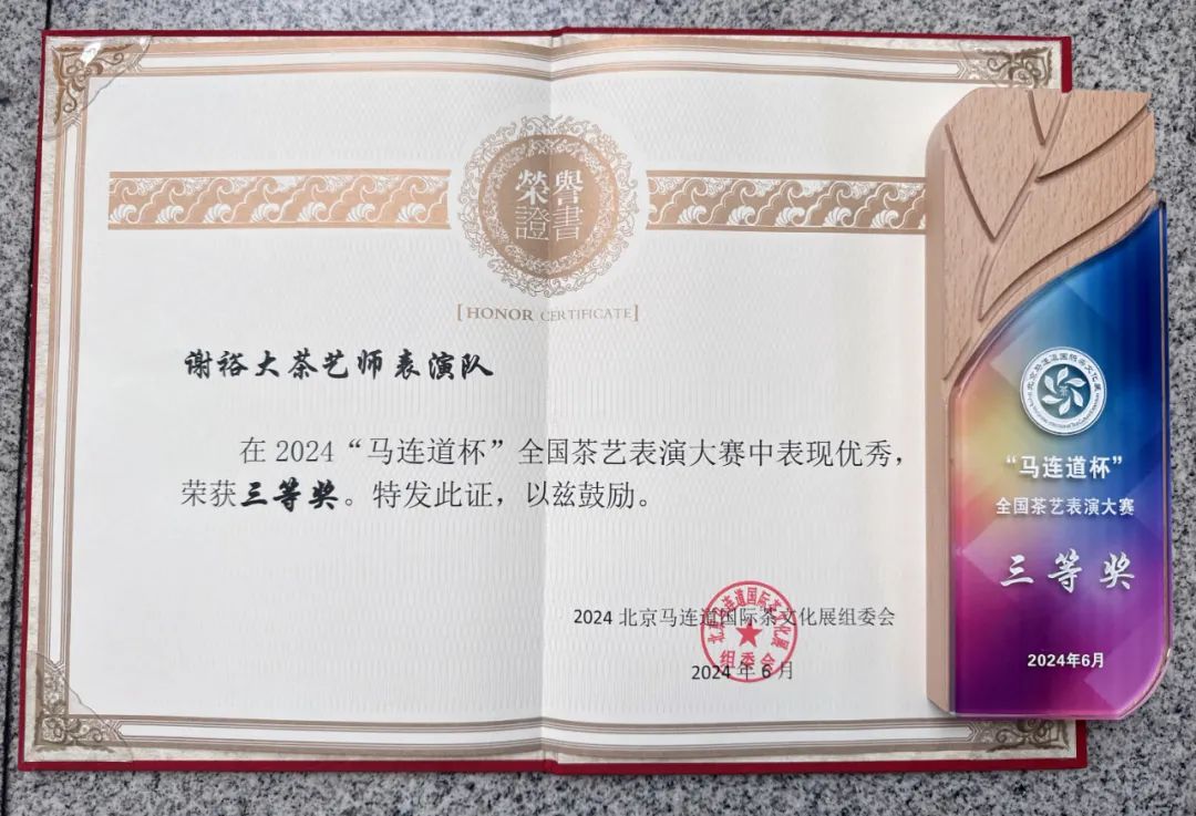 謝裕大茶藝表演劇目《茶香沁兵心》,為致敬“楊根思連”英雄們的英雄事跡而編排。茶作為情感的載體,是母親與女兒之間從不舍、遺憾到釋懷、自豪的小家情緒,與女兒把個(gè)人責(zé)任與中國責(zé)任緊緊相連的大國情感之間的鏈接,以茶祈愿家國情懷,歌頌了新時(shí)代的民族精神與文化傳承,榮獲“馬連道杯”全國茶藝表演大賽二等獎(jiǎng)。