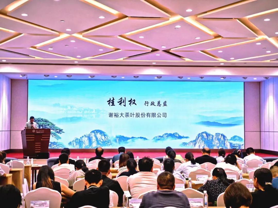7月26日,黃山市“百場萬企 共建共享”政企銀合作促進(jìn)會暨“知產(chǎn)助力 郵務(wù)惠企”專場推進(jìn)會召開。安徽省市場監(jiān)管局副局長、省知識產(chǎn)權(quán)局局長程胤,郵政集團(tuán)安徽省分公司副總經(jīng)理劉文駿,黃山市人民政府副市長張亞強(qiáng)分別為大會致辭。省、市、縣三級市場監(jiān)管(知識產(chǎn)權(quán))部門、郵政部門、金融監(jiān)管部門以及172家企業(yè)代表參加會議。謝裕大作為徽茶企業(yè)代表受邀參加此次大會進(jìn)行主旨發(fā)言,并在會場外的展示館為與會眾人奉上了一杯正宗的黃山毛峰茶。